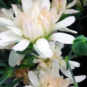 先週の金曜日に入荷した 変わり咲きのスプレーカーネーション。 「ミニ ティアラ ミルク」。 分類上は白ですがクリーム色のような ベージュのような感じの色合いです。 花だけ見るとスプレーカーネーションではないみたいです。 つぼみや葉は、しっかりカーネーションしていますけどね。 色違いはないのかな? 探してみようと思います。