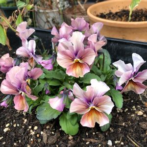 お気に入りの変わり咲きビオラ(☝︎ ՞ਊ ՞)☝︎ 顔っぽくない←ここ重要。このビオラ 70円とかです(☝︎ ՞ਊ ՞)☝︎💖 今年は種をとってみようかと思います💪