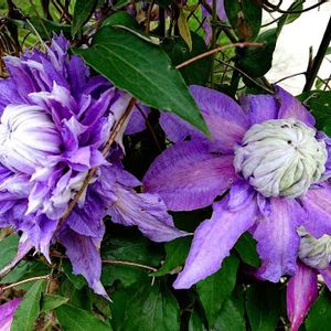 *〜クレマチス マジック・フォンテーン〜* 咲き始めと咲き進んだ状態の花が並んで咲いています✨😊✨