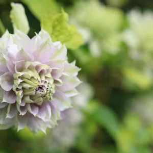 先月のお出かけ先にて… クレマチス ベル·オブ·ウォーキング 薄っすらと藤色が美しい八重のクレマチス 咲き始めは薄っすらとピンクで咲き進むにつれて藤色に変化するそう… お隣にあったらライムグリーンがお気に入りになったのでそちらもアップしますね♡