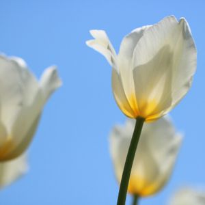 大阪万博公園のチューリップ フェーバス オーソドックスな大輪種 青空に白が映えて…