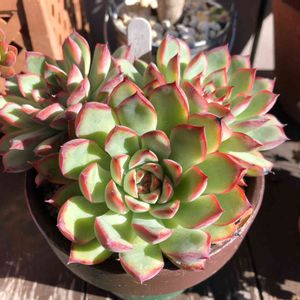 マドレーヌ 夏の間、横へ横へとデカくなり両隣の多肉を圧迫し続けておりました😅 秋も深まりそろそろ引き締まってきてくれないかな?と願う今日この頃です🤣🤣🤣 色は染まり始めたんですけどね〜
