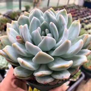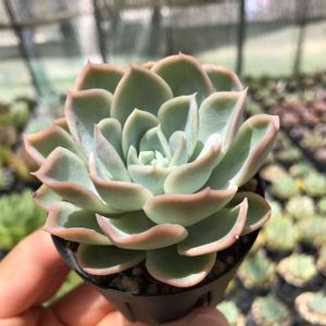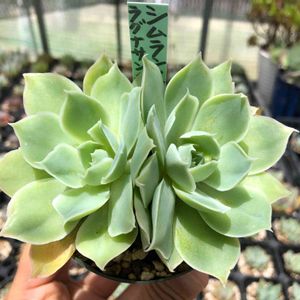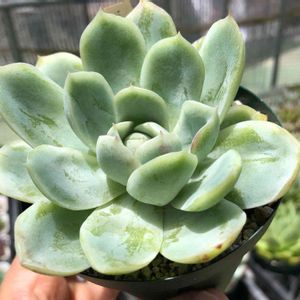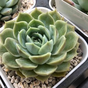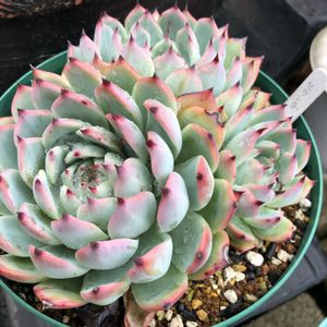 アイスグリーン の葉挿し🍃 親はこの春天に召されました😭 いくつかある葉挿しの中で一番大きい株がリエールのタグを受け継ぎました😊 これから2代目としてしっかりやってくんだよ!