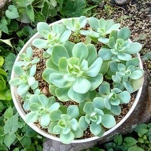 白牡丹🌿 丁度2年前 白牡丹の1株から始まった多肉生活 増えに増えてここまで🙌 親株もこの同じ鉢の中にいます✨ 夏の間は小ぶりでしたが、 涼しくなって水やりを開始した途端 もりもり元気です💪