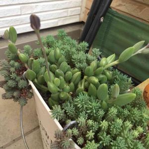 令和の新緑💚② グリーネックレスも復活❣️ 💚の粒も大きくなって、 こちらも花咲いてるし〜〜 いつのまに⁉️ セダムと一緒に大きくなぁれ💕❣️🤗