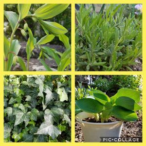左↖️アマドコロ 右↗️ラベンダー 左↙️ヘデラ 右↘️ホスタ 💚令和の新緑💚 グリーンは目に優しく👀心も癒してくれますね😌✨