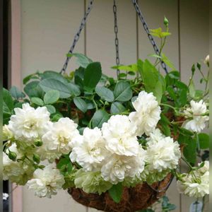 カーテンを開けたら こんにちは〜 笑顔をもらいました😊 『マダムイザックペレール』 香り高いオールドローズです🌹