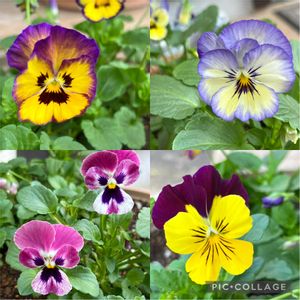 ビオラの鉢植え🪴 玄関に飾りました。 もうそんな季節なんですね。 昨年はブランドビオラをたくさん購入し、なんと春には全滅でした😭 今年は80円のビオラさん達で〜す🌸