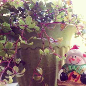 中へ♡ ポスト上に夏からずーっとお外にいたシュガーバインはそろそろ家の中へ✧ 茎が赤くて葉の色が薄い(^_^;) またいい色に戻ってね~✤