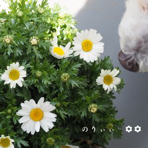 こんにちは。 バトンハウスさん主催の ワンワン祭り、参加させてくださいね ベランダのノースポールと ららちゃんの花・・いやいや鼻です💦