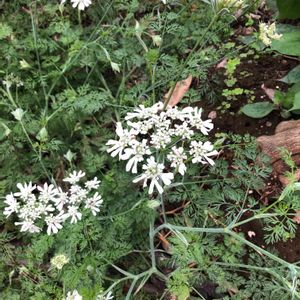 オルレアホワイトレースの一人生えが、あちこちで清楚な白い花を咲かせています😊 ①オルレアの周りの草原🌱のように見えるのは、1ポットから庭に根を下ろし増えてしまったワイヤープランツ… カーポートにも進出してくるので、夫からはかなり邪魔物扱い受けています 笑😆 確かにいろんな植物飲み込んでいます。 実は多肉の葉挿しっ子が入った育苗トレーも飲み込まれました💦 ②オルレアの周りの草(ヨモギやホオズキ)をひくとオルレアもついてきたので、とりあえず花がおわるまで待つことに 笑😆 花が咲く前は、夫にヨモギと一緒に草刈機で刈られてしまい、慌てて止めました😆 ③オルレアの周りのレモンバームも増えすぎてもはや雑草…