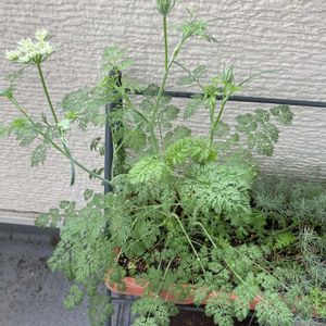 ベランダのオルレア。 知人に種を貰い、プランターに蒔きました。こんなかわいい花が咲くとは!