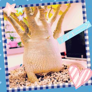🎶バーラが、咲いた バーラが、咲いた 砂漠のバーラーがぁー🎶 ∩^ω^∩🎶💕 ススムくんのやる木を見てやってください🥹 とりあえず 1輪開花しました(((o(*゚▽゚*)o)))♡ 2019年4月に我が家に、やって来てから、3年2ヶ月目に、開花宣言🤩🙌🏻 たくさんの花を見たくて、1番枝が、多いコを選んだのを、覚えています🤔 一斉に開花できるように、 植木鉢🪴を回してましたが、なかなか、上手くいかないね🙉💦 ありがとぉ〜ススムくん😍 これからも、仲良くしてね😉✨ もっと咲いたら、 また、投稿しまーす♪😽🎶 花咲いてわかった事、花が、小さいから、もしかしたら、アラビカムかもしれないね🙉💦 葉っぱに繊毛付いてるし、、、 オベスム、、、でススムって名前付けたから、どうしよう😵💫 カカム⁉️🤣笑笑💦