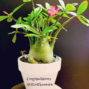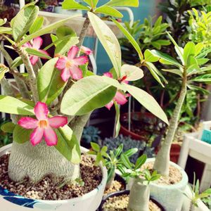 汗だく💦で記念撮影🥵 今日のお花 アデニウム 花言葉 一目惚れ(〃ω〃) 1番左⬅️が、初めて狩ったアデニウム❣️ タグにオベスムと書いてあったけど、花咲いたら、アラビカムだった😳 最初、ニックネームをススムくんにしてましたが、アラビカムとわかってからは、ビッカムくんに変更しました🤣 確かに、葉っぱも、細かい毛が生えていて、オベスムのツルッとしたツヤ葉っぱとは違ってたね🤔 で、オベスムを育てよう٩(๑❛ᴗ❛๑)۶ と、種子をポチッとな☝️ 左から2番目3番目が、実生株 黒い鉢のコは、初めて花芽ついてますよ🤩👍 その隣、柄鉢の右側は、ベージュ鉢の胴切りした上半身 左の柄鉢は、胴切りしたコの胴切りした上半身🙉ヤヤコシヤー💦 また、胴切りするかな🤣 右端のクリクリ葉っぱは、GSの皆様の投稿見て、欲しいと思って狩りました😊