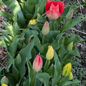 昨年の11月に植えたチューリップが次々に咲きました🌷💗❤💛