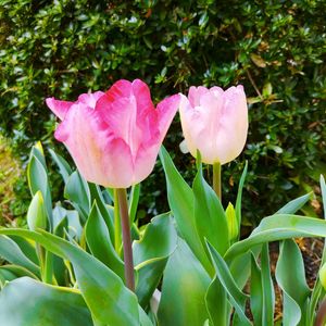 こんにちは👋😃 今日は散歩で出会ったチューリップです🌷🌷🌷🌷🌷🌷🌷🌷 色々な色がありどれも可愛いですね🙆 3枚あります見て下さい🙇