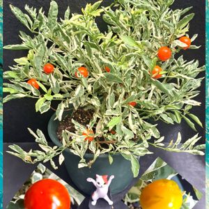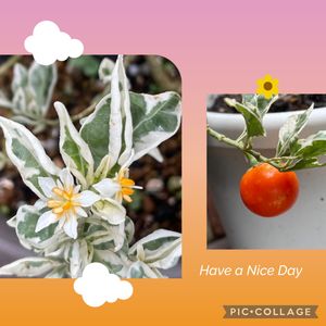 オレンジ🟠に黄色🟡💕 そろそろ食べ頃?🤔 ダメ🆖ですよ~😱👿⤵️ 木全体にソラニンという毒があり食べると嘔吐したり場合によっては命に関わることもあるそうです ペットを飼っているお家は、植えない方が良いそうです⚠️ 昨年も、8月に投稿してますが…ほぼサイズそのまま🤭 我が家で、コンパクトに育ってくれるありがたい植物です😍🙆💕 🏷️月曜日にビタミンカラー 🏷️斑入りフェチ に参加させてもらいますね~🙆💖💝
