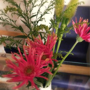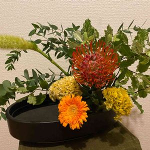 今日は、学校で使ったお花をドライにして貯めていたのを集大成としてスワッグ にしてきました。 「これはあの時のアレンジのだ」とか「この花材をどこに使うかで苦労したな」とか色々考えながらなつかしい気持ちで作ってきました。 色を考えたりしてお洒落に統一感とか考えて作ると良いのだろうけど折角の思いいれのある花達を全部使いたかったのでバラバラな感じは否めませんが、私にとって良い記念の作品になりました。 学校はあと2日。最終日は終了式だけなので実質明日まで。 最後はドライのガラスケースへのアレンジメントでお終いです。 短いような長いような3ヶ月でしたが、充実した日々でした。 学校での私の拙い作品を見ていただいた皆様ありがとうございました😊