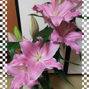おはようございます。 球根から育てた百合 咲き出しました。 まずは💗ピンク 今日も素敵な1日を💕