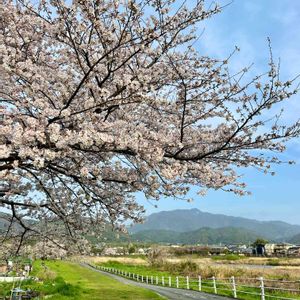 枝垂れ桜 朝の嵐山の風景 おはようございます☀ 今日は暑くなりそうですが、桜もまだまだ見頃、絶好のお花見日和になりそうです🌸
