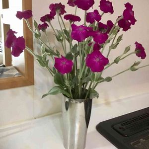 息子ん家 に 来たのが 土曜日 。 庭に 咲いてた 花🌺 が お土産 だった 。。 ありふれた フランネルソウ 🌺 この花も 少し 悪くなって来たので、悪い所を 切って、生け直した この花だけの 生け方、意外に 合う花器 が 少ないかも 知れない... 食器棚から ステンレス製の コップを 見つけた ❗️ 花生けに 勝手に 使ったら、怒られるかも知れないが、この花を 入れてみた ❣️