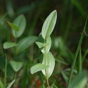 ヒメイズイ(姫萎蕤) 別名ヒメアマドコロ(姫甘野老) *キジカクシ科アマドコロ属 花期は5〜7月 北海道〜九州の山地や海岸の草地に生える。 草丈は10〜45cmほど! 茎は直立して、稜がある。 葉は互生し長楕円形から広楕円形でくっきりとした葉脈あり! 花は葉腋に筒状の花を一つ吊り下げて 白〜クリーム色で花の先は緑色で6裂! イズイはアマドコロの別名で、アマドコロに比べて小型なのでヒメ(姫)が付いた! ①奥にはレンゲツツジ! ②上を向いた花も! ③小さめの株! ④スズランと混成して! ⑤今回からスケールを持参! みどりのまとめ に入れていましたが、もう少し詳しい情報を付けたしました♪ 5月27日撮影