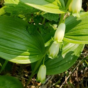 ヒメイズイ(姫萎蕤) キジカクシ科 アマドコロ属 (4)5~6月 20~50cm 在来種 多年草 山野 海岸草地 茎は直立し、葉は卵形~長楕円形で互生して7~9(11)個つく 花は白色~クリーム色 葉腋から1(~2)個ずつ垂れ下がる 花被は合着して筒状になっており、先端が緑色で浅く6裂する 花糸は途中まで花被に合着している 海岸で咲いています🤍 花の先がほんのり緑色😊 ここに咲くものは草丈10cm前後のものが多いです 小さくても元気いっぱい!😆
