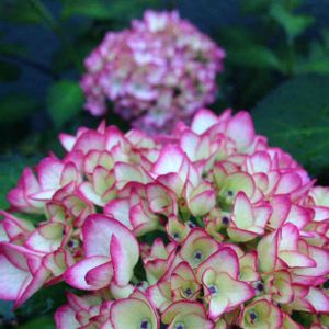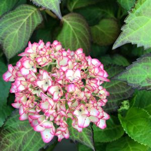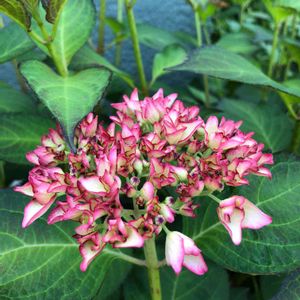 紫陽花 未来💕 今は赤っぽいですがだんだん可愛いピンクに変わります 黒味を帯びた葉色も魅力的です