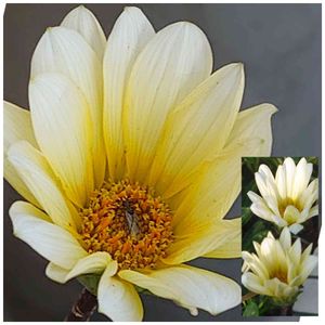 ガザニア キク科ガザニア属 咲き始めの白い 花びらが新鮮です😀 想像した花びらと 違いビックリです😲