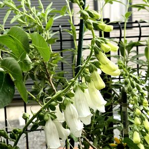 ジキタリス スノーシンバルが咲き始めました🌼*゚ また、間違えてました💦 スノーシンブルだそう🤣🍃 初めてのジキタリス💕 そちらに向けて開花するの~🤣🍃❓ 結構純白で可愛いです🌼*゚ 種取りしたい🍎