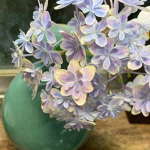5センチにもなるかならないくらいの小さな山アジサイ舞妓をドライにしました🤗水色だったのが少し緑になりました。家中あちこちに飾って楽しんでいます♪