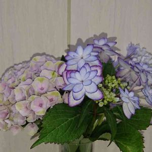 ブーゲンビリアと一緒にお連れした、 格安の紫陽花💐 タグがなかったので、詳しい名前が分かりません😅 母の日も近く、忙しい店員さんに聞く事も出来ず…😆 最近は、紫陽花の種類も増えて、様々な色合いがある様ですね❣️🎶🎶 💜💚💙🤍❤️🌿🌿(୨୧ ❛︎ᴗ❛︎)✧︎