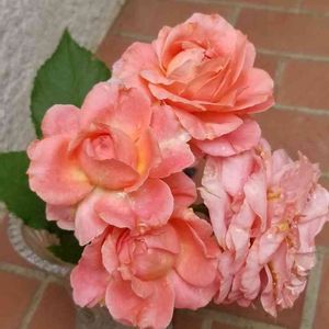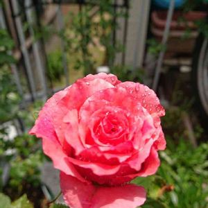 コラーユジュレ/河本バラ園 はじめの方についた蕾がブルヘッドばかりで5個位摘蕾しました😵 やっとまともな花が咲いてきた🌹 いつものごとく見たままの色が取れないバラです\(^o^)/ もっと色が薄くて珊瑚色です〜すごく綺麗なんです😍 どうして写真になるとこんな派手な色になるのか… もっと腕を磨かないとダメなのか\(^o^)/