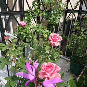 コラーユジュレ 後ろにアンジェラも咲き始めています。
