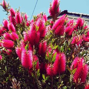 金宝樹 ブラシの木も咲いていました 豊門会館の帰り道、隣接しているお宅の花です この辺りでは珍しい花です🌺 ブラシのような面白い花ですね💐