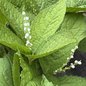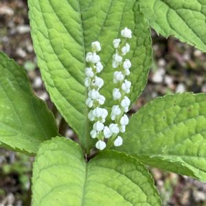 フタリシズカ 二人静の花が咲き出しました🌼 花と言っても花弁も萼も有りませんが… 一人静の花と言い不思議な花です🌼 真っ白な米粒みたいな花を一茎に数個つけます。 雄しべが3本あってこの3つの雄しべがくっついて雌しべを包んでいるんだとか🧐 二人静は一人静が静御前の舞に例えたのに二人静は静御前と亡霊トカ😱 我が家の二人静 三人官女に4人と5人囃子まで ④一人静の花 ⑤一人静の種ができました🟢
