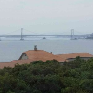 【番外編】昨日、べっぴん鱧のコースを頂いた「うずしお温泉♨️」の旅館にて鳴門大橋が見えます。🤔😊😄🤗🌞 左側が陸続きの淡路島、右側が四国の徳島県です。🌊🌀👌