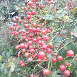 サルトリイバラではないけど庭のローズヒップです。花オクラとローズヒップのドライフラワーにしています。昨日も薔薇の剪定作業。