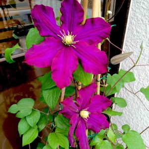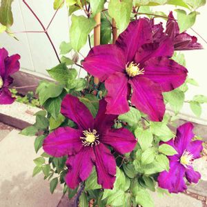 ハーバート・ジョンソンがどんどん開花してます💜 このクレマチスのシベの色が特に好きです😍 この品種について調べてみたら、この品種名は人名で、ヴィヴィアン・ペンネル × パーシー・ピクトン の交配種とのことでした🤔