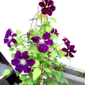 クレマチス ハーバート・ジョンソンというタグが付いたものを小さな小さな苗で迎えたものです。 今年はたくさんつぼみが付きました✨💜 何年もかかりました😅