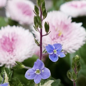 🏷今日のお花「ベロニカ」✨💙 これは「ミッフィーブルート」という園芸品種で、斑入りの葉を持っています🌿 1月下旬からデージーと寄せ植えにしていて やっと咲いてくれました✨😆 オオバコ科ベロニカ属カラフトヒヨクソウ種 別名 :「ジャーマンダー・スピードウェル」 今日の花の写真でベロニカは細長い、と思い初めて見る花と思っていましたが、 皆さんの投稿を見ていて、 あれっ!我が家にもあるじゃん❗️ ということで投稿させて頂きました❣️ 昨日の雨で散ってしまったので、数日前の花です🥲😄
