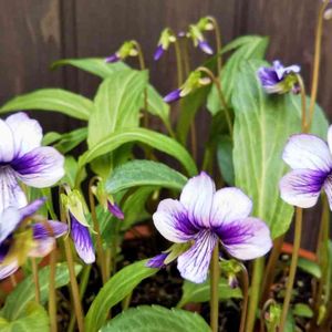 絞り咲きのすみれが咲き出しました 毎月地域の草むしりでむしり取られて悲惨な目に遭っていた野良すみれを救出してきたものです 野良出身とは思えない艶やかな色、株姿もすらっと上に伸びて纏まる容姿端麗な子たちです