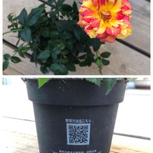 今日買ったミニバラです🌹 こんなに綺麗なのになんと250円〜॑⸜(* ॑꒳ ॑* )⸝⋆* あとポットにこんなQRコードが! 時代って進んでますね〜