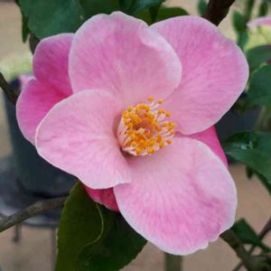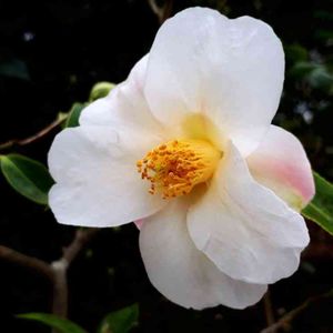 「昭和侘助」という名前の椿 ほんのりピンクが愛らしい♥️ 百合が原公園にて