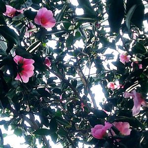 上を見上げると、小さめの椿サン💗が…「何て美しいのでしょう✨」と思いました🎵(*^^*) 今朝も連投です!<(_ _*)>