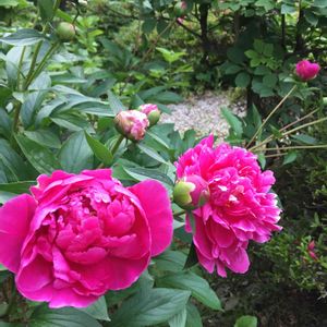 芍薬 お庭の隅っこの花壇に咲いた芍薬 蕾も丸くて可愛い💛 薔薇も綺麗だけど、芍薬が1番好きです✨美しい