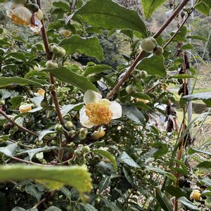 終わりかけのお茶の花と、始まりかけのヤツデの花☺️ 今日は寒くて、やっと10月らしい体感です🍁