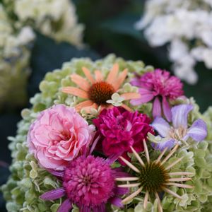おはようございます«٩(*´ ꒳ `*)۶» 今朝はいいお天気、最近聞こえなかったセミさんの声が鳴り響き、蒸し暑くなりそうです。 昨日の台風は大丈夫だったでしょうか? あちこちで被害が出ているようですし、北海道の方でも水害が発生しているとか( ฅ ω`)~゚ 皆さんに被害が出ていなければいいのですけど… 昨日見えなくなってしまいましたアナベルさん、今日はアナベルさんにバラさんやエキナセアさんのお花を置いて撮影しました(✿︎´ ꒳ ` )♡︎ 白いお花がだいぶ緑色に変わってます。 これもまた素敵です( ˶ˆ꒳ˆ˵ ) そうそう、うちは昨日の台風でバラさんの植木鉢が3つ倒れて転がっていましたけど、それ以外被害はなさそうでホッとしました( ˶ˆ꒳ˆ˵ ) 散らかってる葉っぱなどのお掃除は大変ですけどね(×∀︎×๑ ) 今日も素敵な一日を(〃ω〃)♡︎♪︎