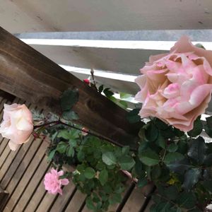 朝陽の中で微笑んで✨って感じだね😊 薫乃がそれはそれは良い香りで癒されます ベランダで落ち葉を拾っていたら、すぐ近くで鳥の声が…洗濯物の陰からそーっと覗いてみるとシジュウカラが鉢バラの枝にとまってついばんでいました😊虫のフンが落ちてても本体が見つからないのは彼らが獲ってくれてたのかも🎵 この季節はシジュウカラなどの小鳥が庭に来て盛んにさえずっています💕至近距離に飛んでくることもあって、そんな時にスマホ持ってくればよかった〜っていつも後悔😅 今日は巣箱の周りの枝を切って少しキレイにしましたよ😄内見どうぞ〜♪