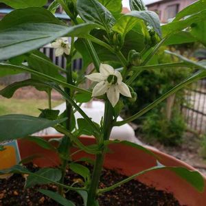 花が咲きました🌼 赤いジャンボピーマンの花です たくさんなるといいなぁ😃💕